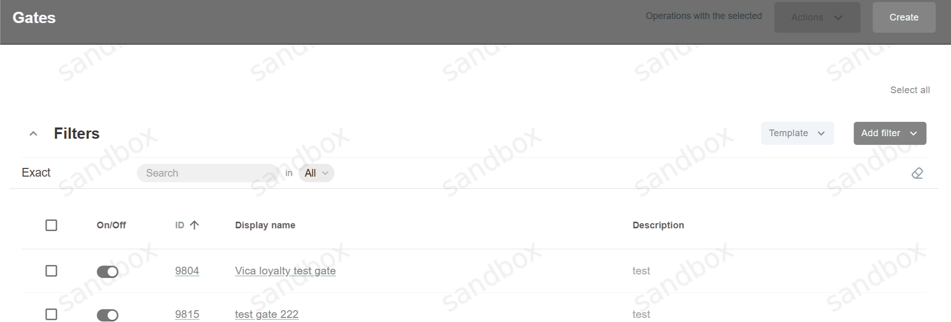 Gate is a set of parameters, which identify account registered in a third-party processing system. These parameters can be used to process payment data in an external system using the messaging protocol implemented in the Processor. The Gate list screen is located at Settings -> Configuration -> Gates. This screen contains all Gates created for Manager in the system.